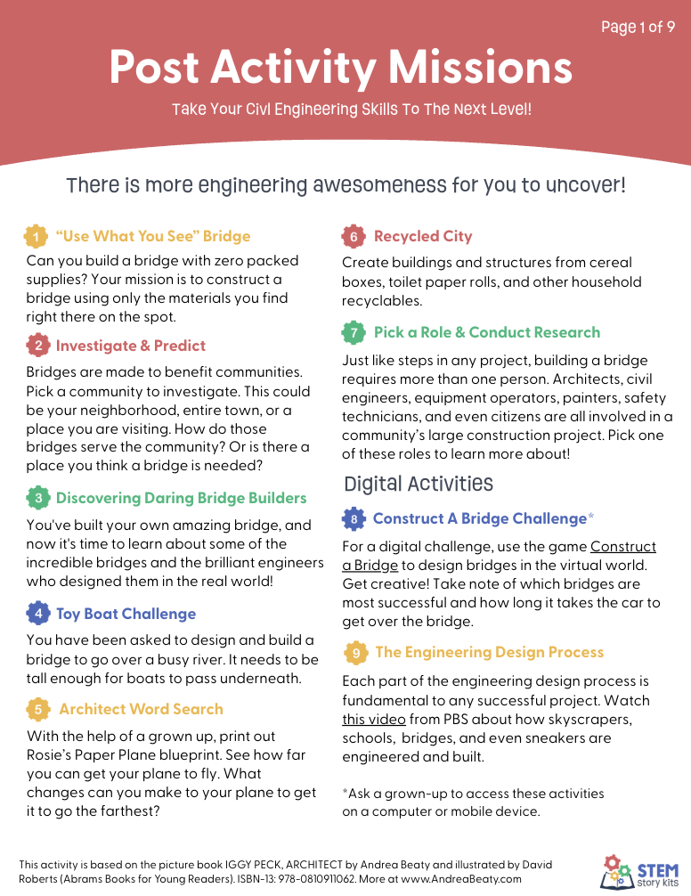 Activities created for the picture book Iggy Peck, Architect by Andrea Beaty & illustrated by David Roberts (Abrams Books for Young Readers) All illustrations © 2007 by David Roberts. All rights reserved. www.AndreaBeaty.com